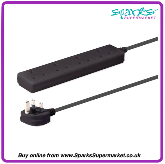 2m 4-Way UK Mains Power Extension, Black