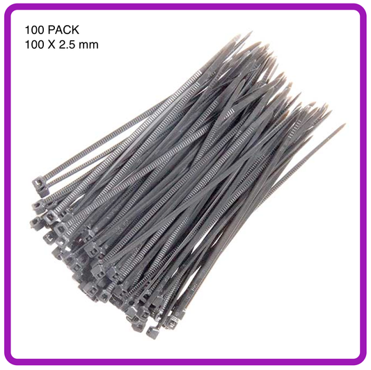 Black Cable Ties 2.5mm X 100mm - 100 Pack