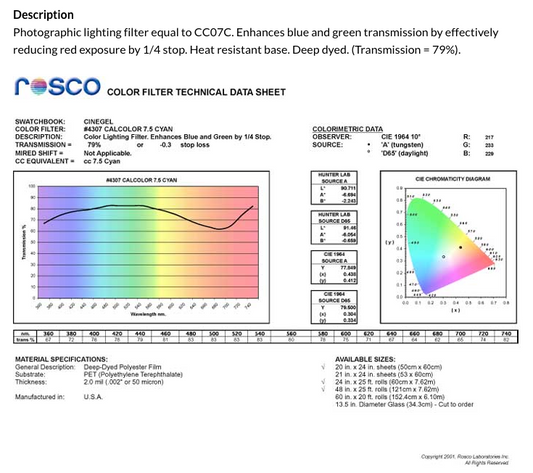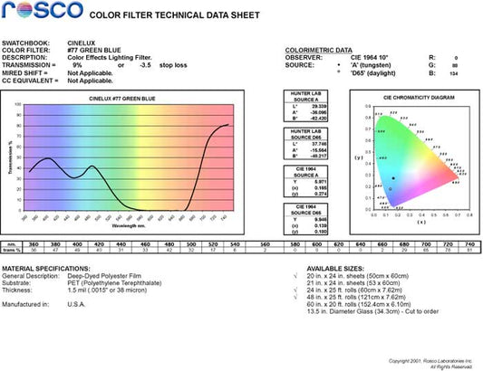 Roscolux #77 Green Blue - Sheet 53Cm X 61Cm