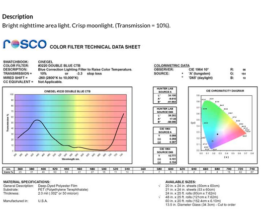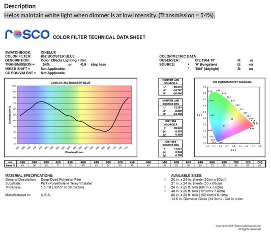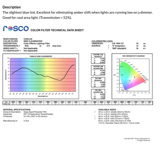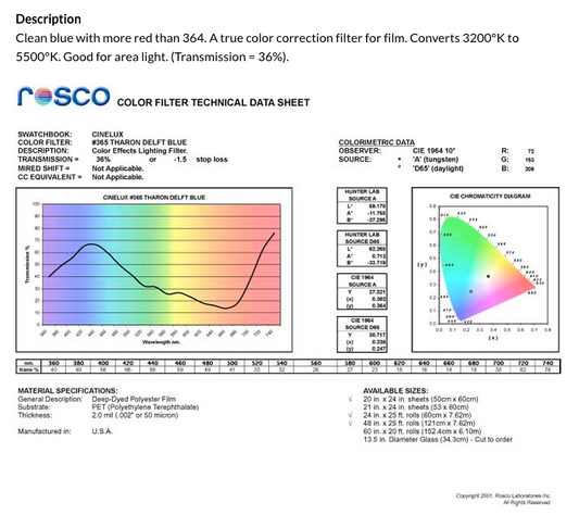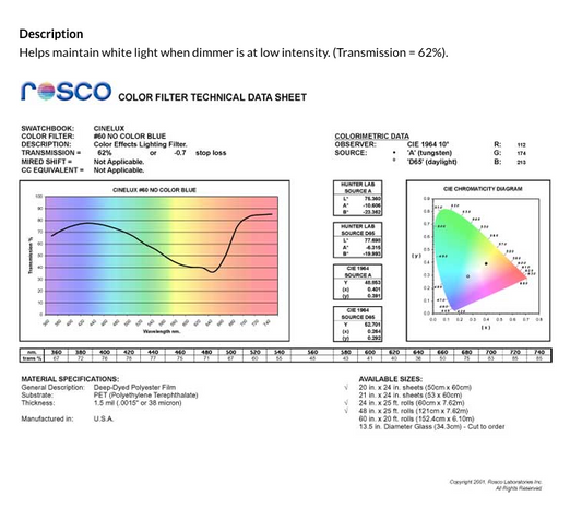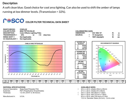 Roscolux Cinelux #365 Tharon Delft Blue Sheet 53 X 61 Cm