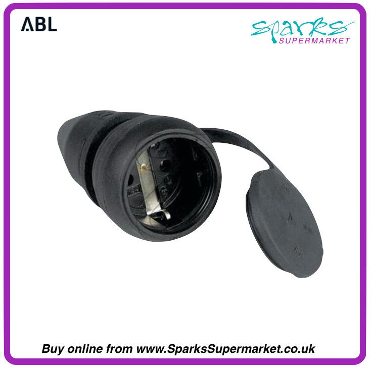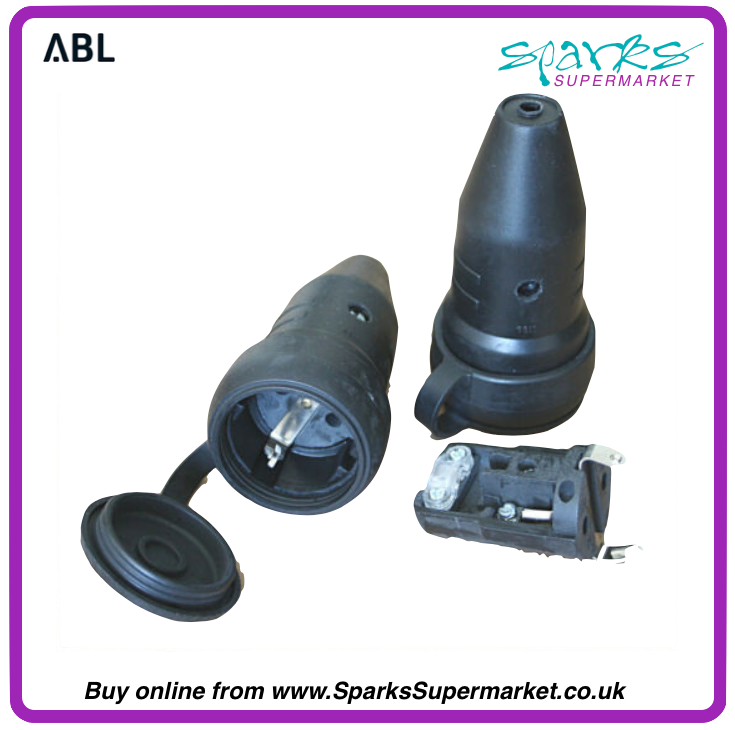 Rubber 2P+E Durable rubber female connectors for use with Schuko 2 pin plugs with double 'scraping' earth contacts.