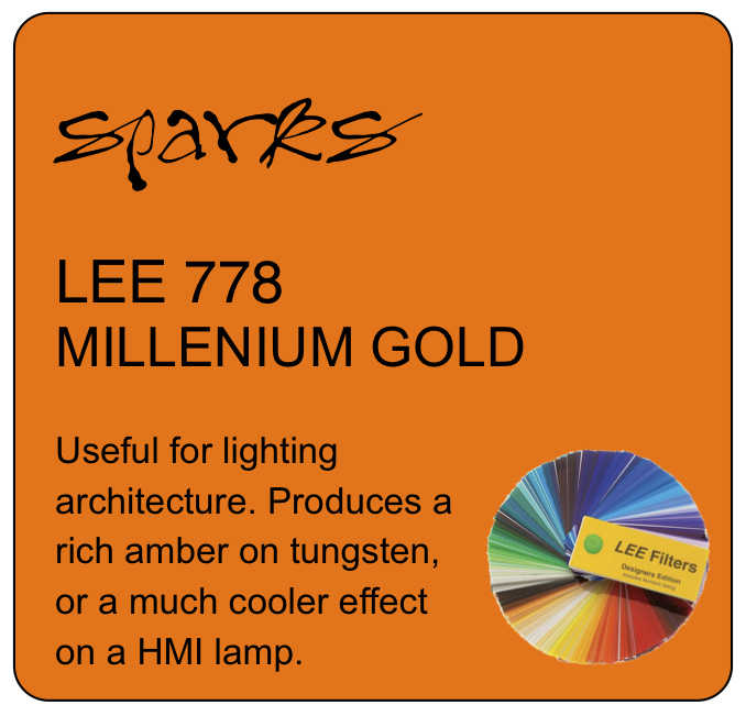 Useful for lighting architecture. Produces a rich amber on tungsten, or a much cooler effect on a HMI lamp.
