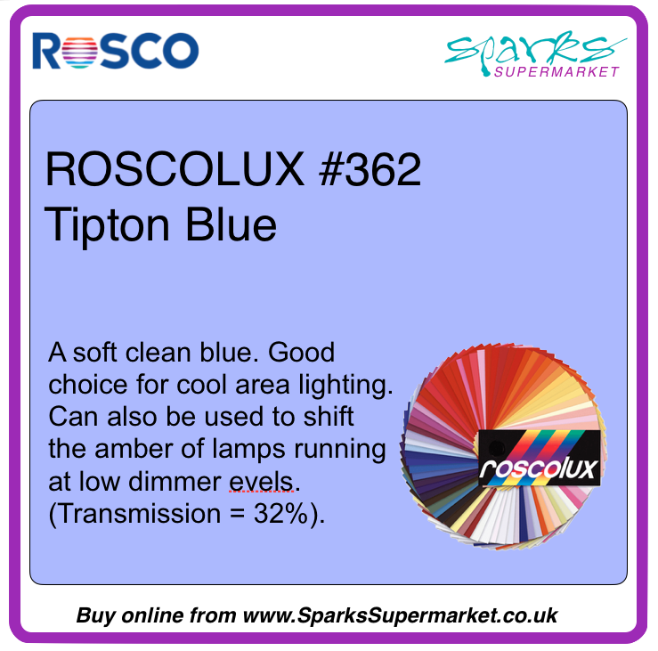 A soft clean blue. Good choice for cool area lighting. Can also be used to shift the amber of lamps running at low dimmer levels.