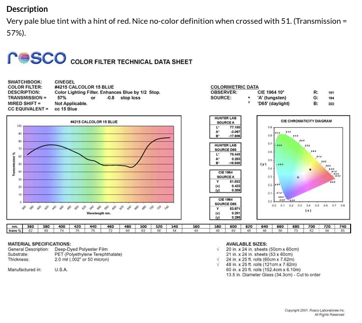 Roscolux #4215 Cal Color Blue 15